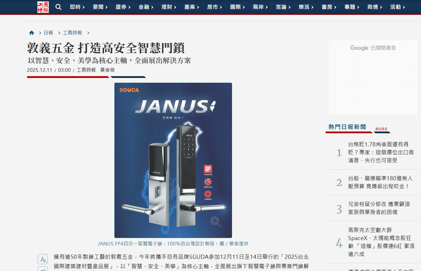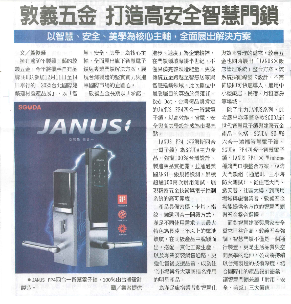 Through Commercial Times’ professional reporting, information related to the building exhibition was more widely shared, helping to foster greater attention and dialogue among industry partners regarding the development of smart security and architectural hardware.
