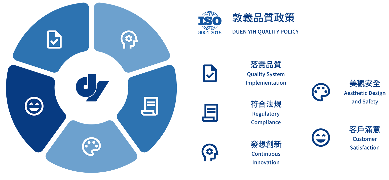 我們從未懈怠致力於國際化、標準化、電腦化及自動化的企業標準。敦義五金落實品質管理系統,我們有信心提供最好的服務和優良的產品來滿足客戶的需求。